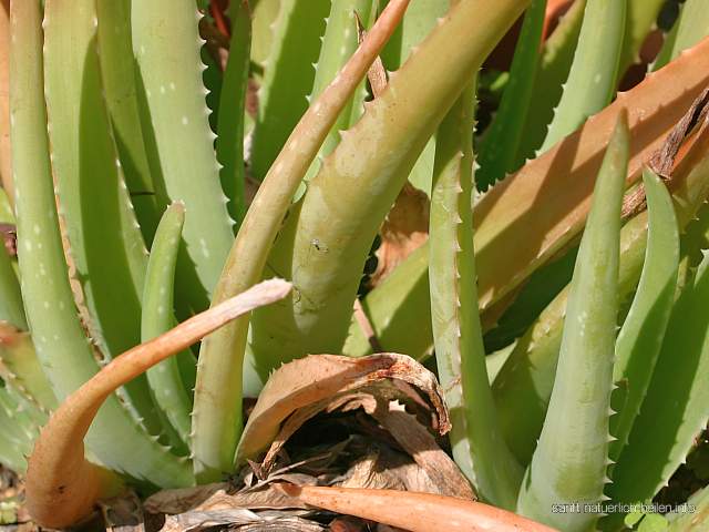 Echte Aloe (Aloe vera) – auch Curacao-Aloe und Wüstenlilie genannt – stammt wahrscheinlich ursprünglich von der arabischen Halbinsel, dem Sudan oder den Kanarischen Inseln. Weltweit wird die Pflanze heute in allen subtropischen und tropischen Regionen kultiviert und gilt in vielen Gebieten als eingebürgert. Zu den Inhaltsstoffen der Echten Aloe gehören Acemannan, Mineralstoffe wie Calcium, Mangan, Zink, Selen und weitere, Vitamine, Aminosäuren und Flavonoide. Die Pflanze wird als Zier- und Heilpflanze genutzt. In der traditionellen Medizin wird die Echte Aloe für Heilzwecke verwendet, unter anderem als Bestandteil von Rezepten bei Akne, Bronchialasthma, Duodenitis, Ekzeme, entzündlichen Hauterkrankungen, Fußpilz, Ganglion, Herpes, Husten, Komedonen, Neurodermitis, Osteochondrose, Schuppen und Haarausfall, Schnupfen, Verbrennungen und Sonnenbrand, Verdauungsbeschwerden und Verstopfung.